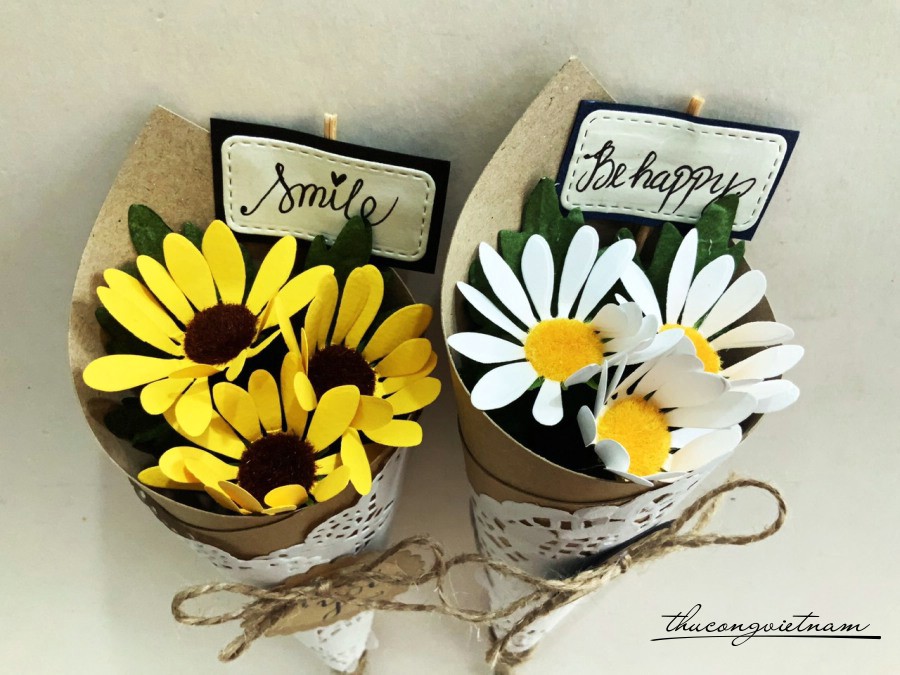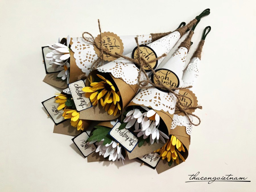 Bó hoa cúc được gói giấy vintage, nhiều màu sắc cho bạn lựa chọn.