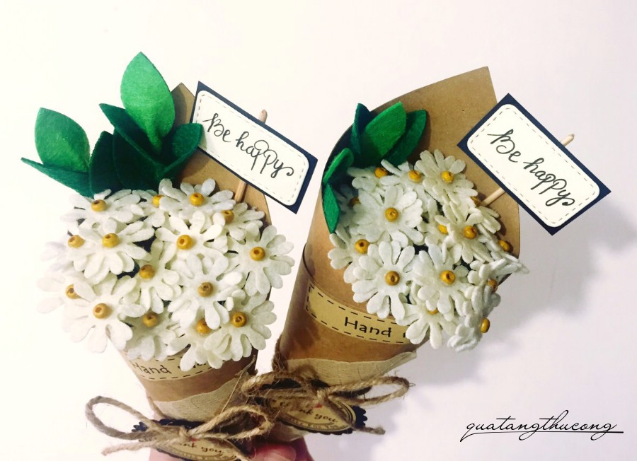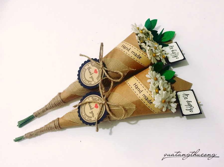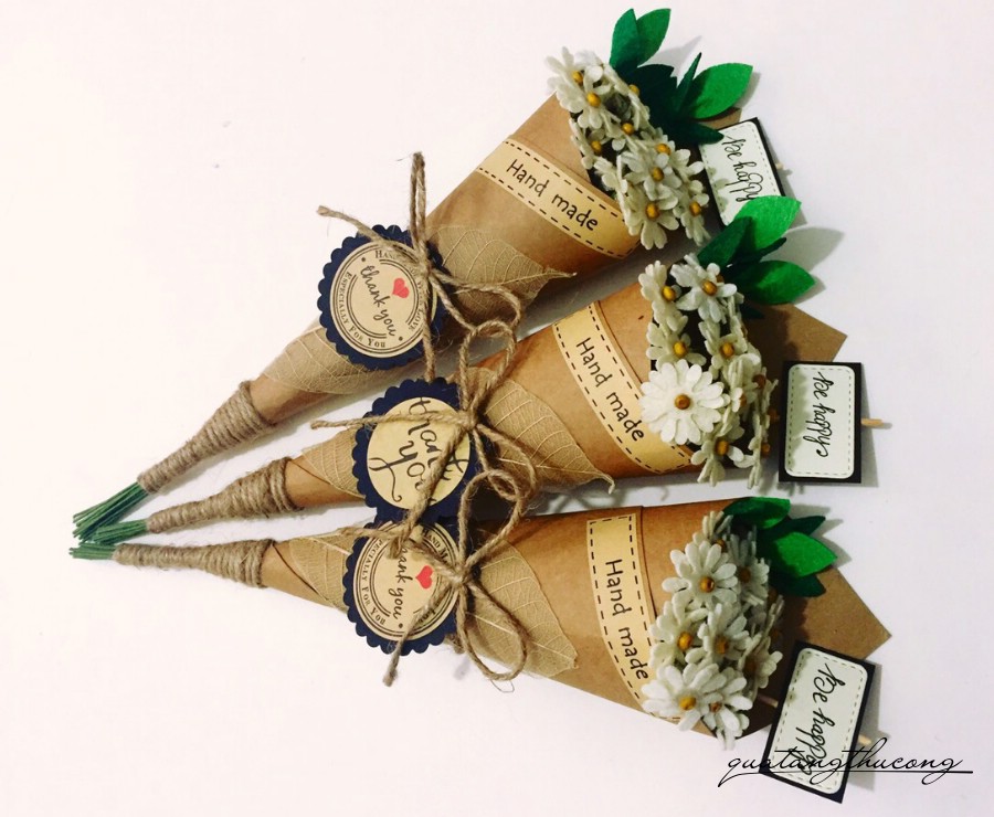 Bó hoa cúc được gói giấy vintage, nhiều màu sắc cho bạn lựa chọn.