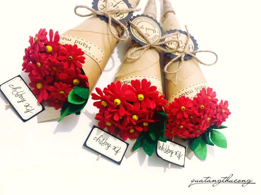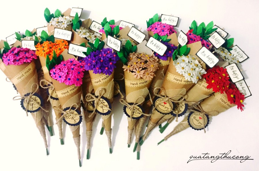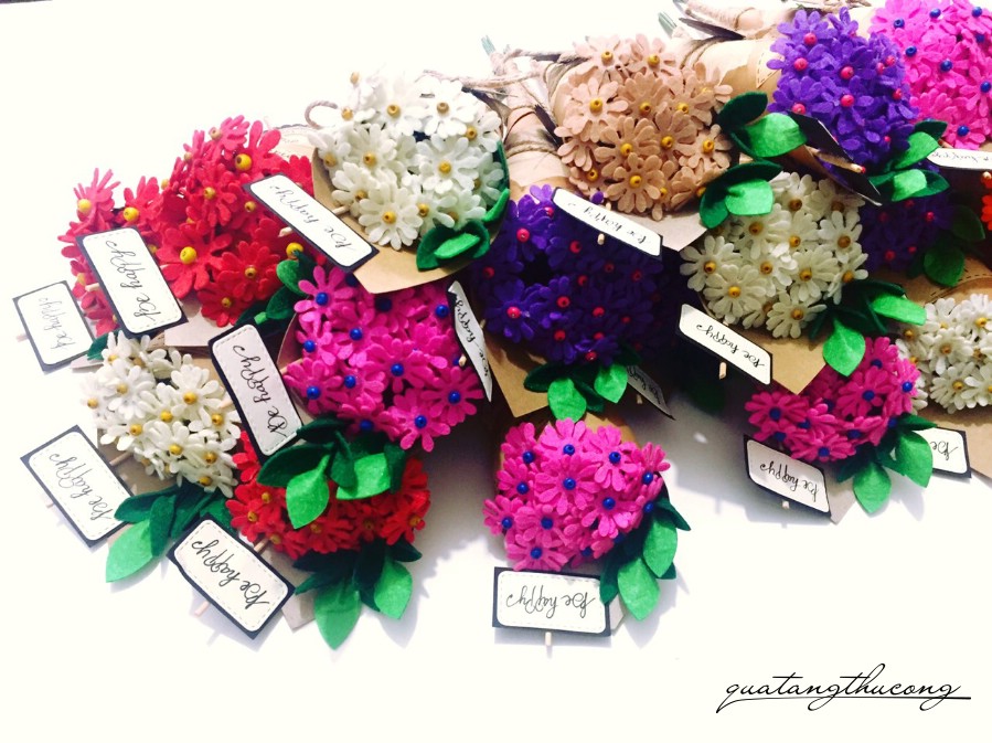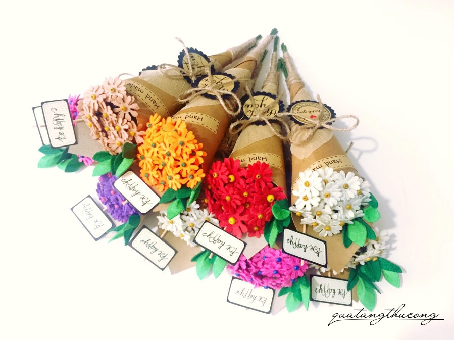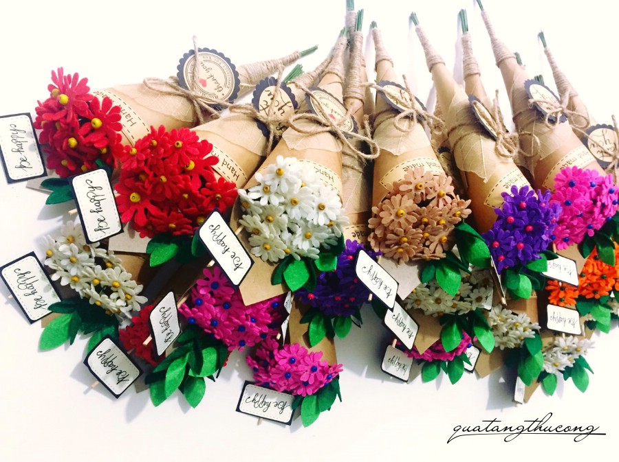 Những bó hoa từ giấy mỹ thuật, từ vải đã quá quen thuộc tại Vinacraft rồi. Tuy nhiên thì không hề nhàm chán vì có rất nhiều loại hoa: hoa hồng, hoa thạch thảo, hoa Tulip, hoa cẩm tú cầu, hoa đồng tiền, hoa cúc... và được làm từ nhiều màu sắc rất sống động.