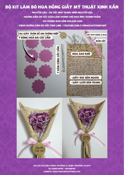 Bộ nguyên liệu bó hoa hồng tím giấy mỹ thuật