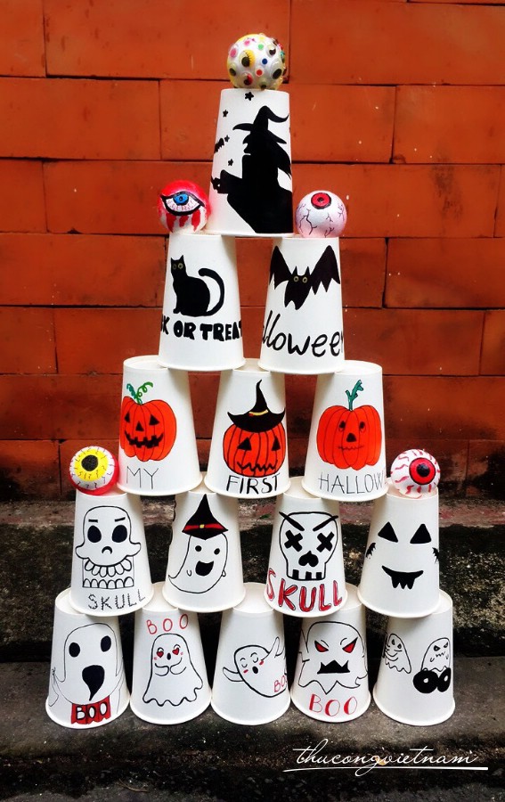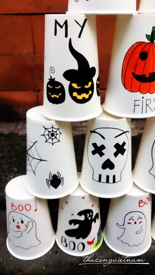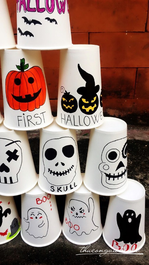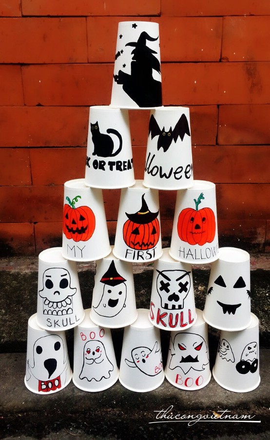 Bộ ly Halloween dùng để trang trí, chơi bowling và dùng để uống nước nữa. Ly giấy được trang trí phong cách Halloween theo phong cách riêng của bạn, tùy ý chính bạn sáng tạo.