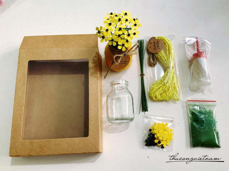 Bộ kit với đầy đủ nguyên liệu để hoàn thành 01 lọ hoa 5 cánh: