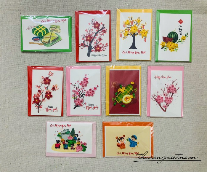 Bộ quilling dụng cụ làm 10 thiệp Tết 6*9cm nhiều mẫu