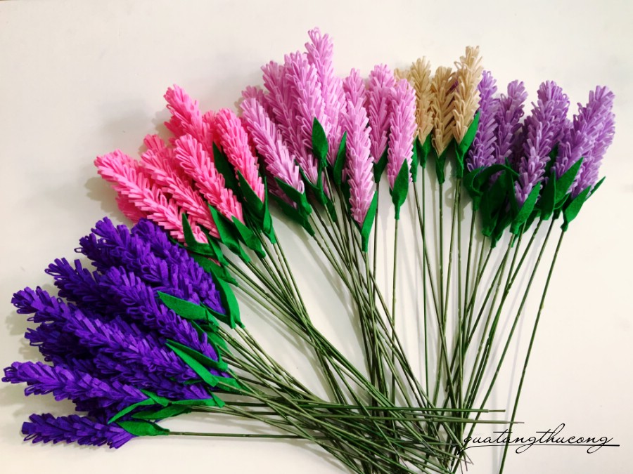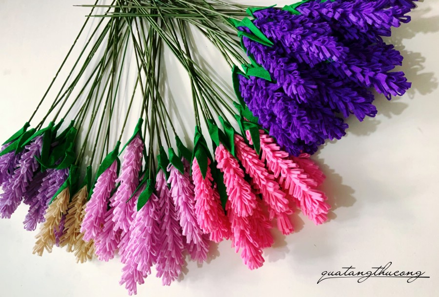 Cành hoa Lavender được làm từ vải nỉ, các cánh hoa được cắt toàn bộ từ tay.