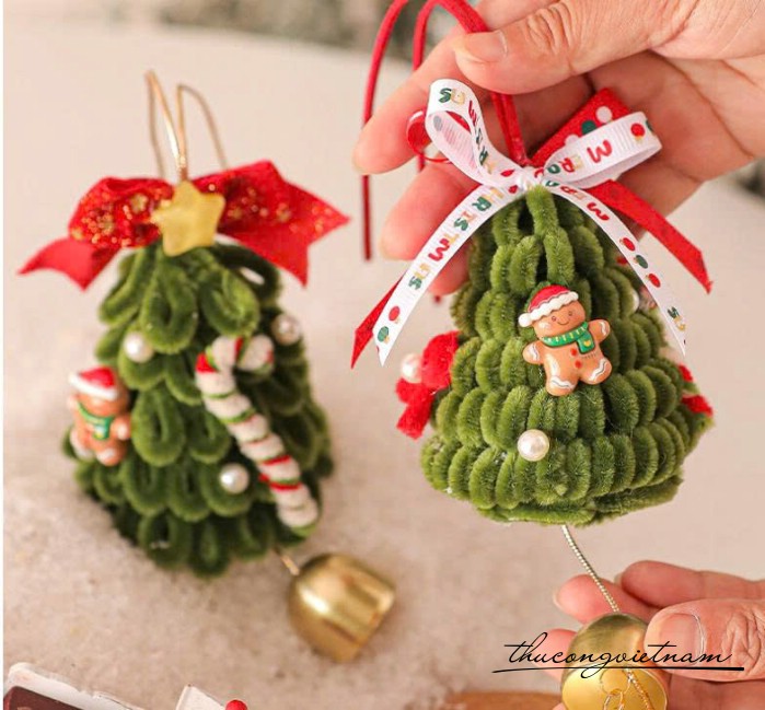 Cây thông kẽm nhung treo kèm chuông mang nét trang trí Giáng Sinh nhỏ gọn mà cực kỳ nổi bật. Chất liệu kẽm bọc nhung mềm mịn, tạo hình cây thông dễ thương, đi kèm chiếc chuông leng keng tăng thêm không khí lễ hội
