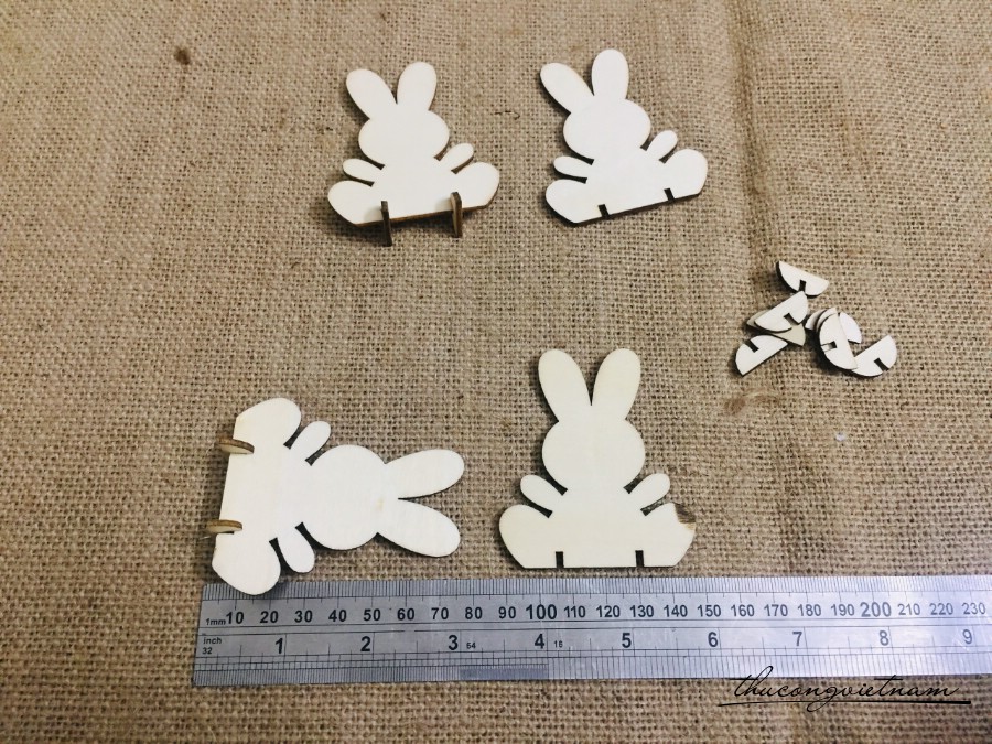 Thỏ gỗ trơn, dùng để trang trí phòng học, nhà cửa hoặc vẽ màu thêm để làm các sản phẩm handmade.