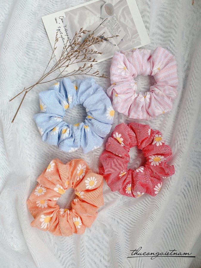Dây cột tóc Scrunchies dành cho các bạn nữ, nay được may với nhiều mẫu vải, họa tiết khác nhau.