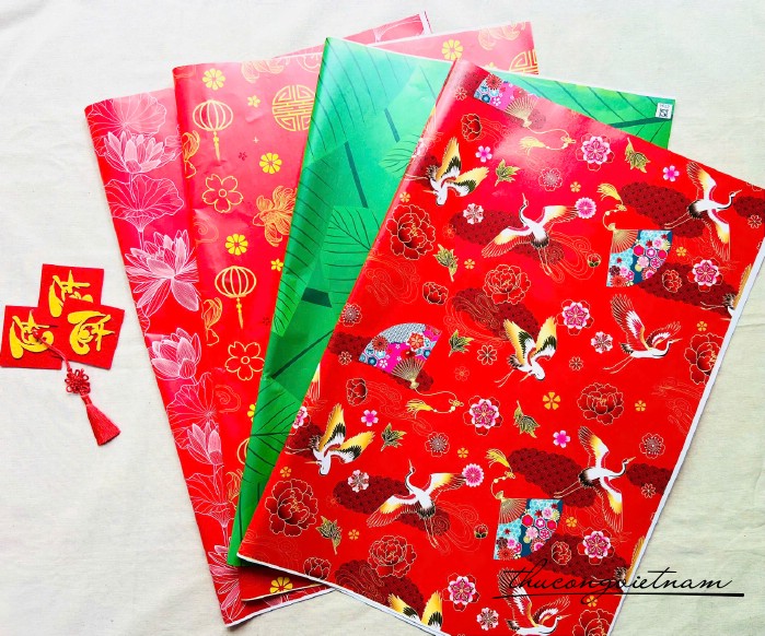 Giấy dùng để gói quà Tết, trang trí giỏ quà, hộp quà thêm sang trọng và nổi bật.