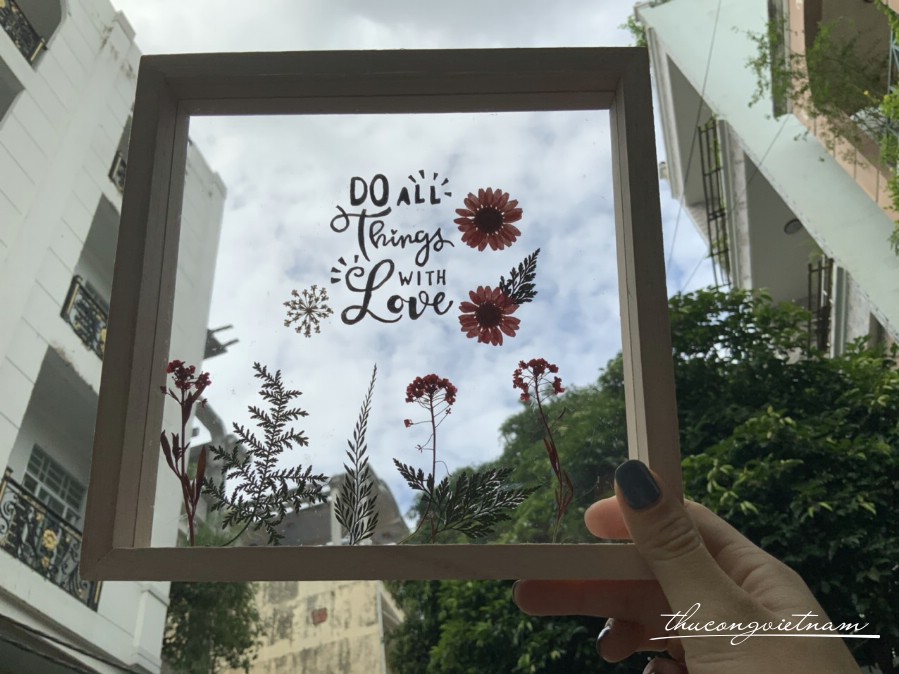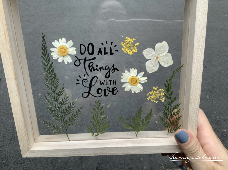 Khung ảnh mica ép hoa khô, chữ viết tay với nhiều thông điệp khác nhau, phù hợp làm quà tặng vào nhiều dịp.