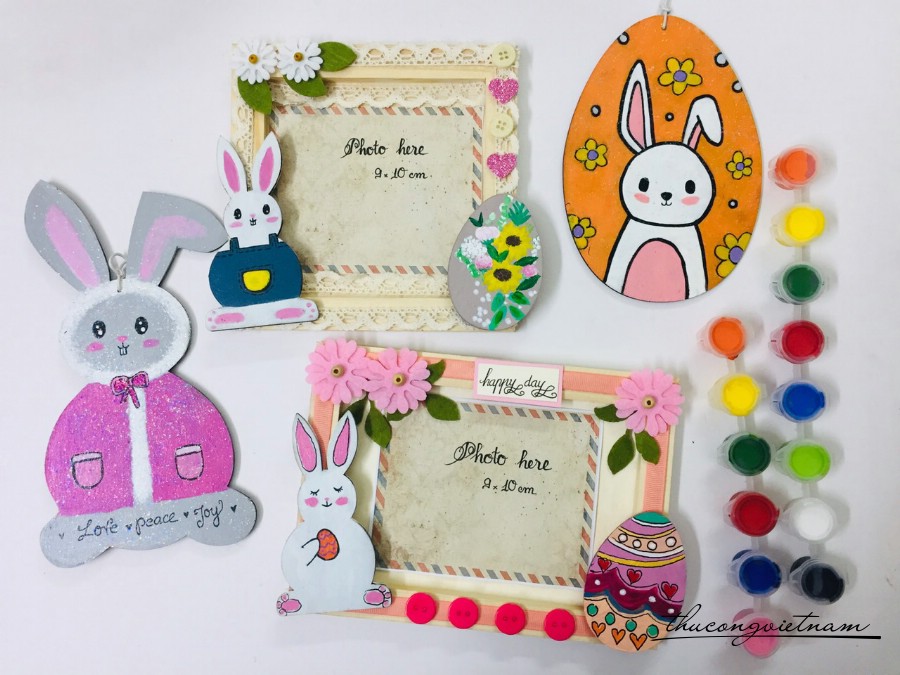 Khung ảnh gỗ trang trí hình chú Thỏ và Trứng.
