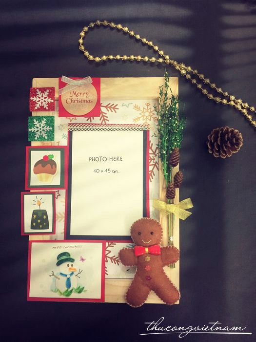 Hình dán ở giữa khung gỗ là trọng tâm, nhưng mà chiếc bánh Gingerbread men hẳn sẽ là điểm nổi bật.