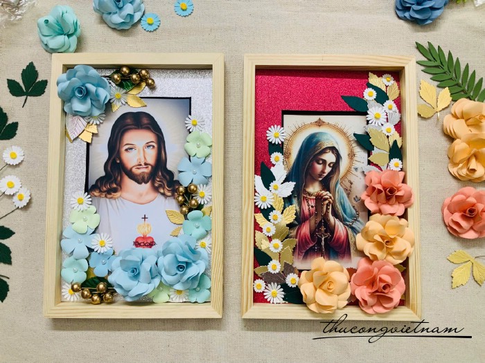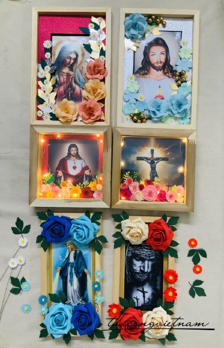 Khung Thiên Chúa, Đức Mẹ Maria hoa 3D (20x30cm)