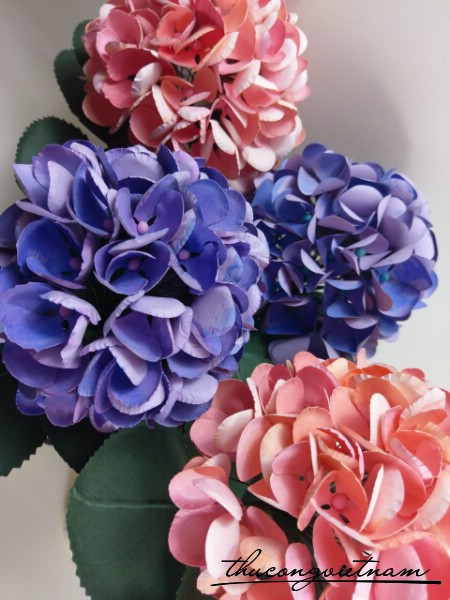 Những lọ hoa từ giấy mỹ thuật đã quá quen thuộc tại Vinacraft rồi. Tuy nhiên thì không hề nhàm chán vì có rất nhiều loại hoa: hoa hồng, hoa thạch thảo, hoa Tulip, hoa cẩm tú cầu,... và được làm từ nhiều màu sắc rất sống động.