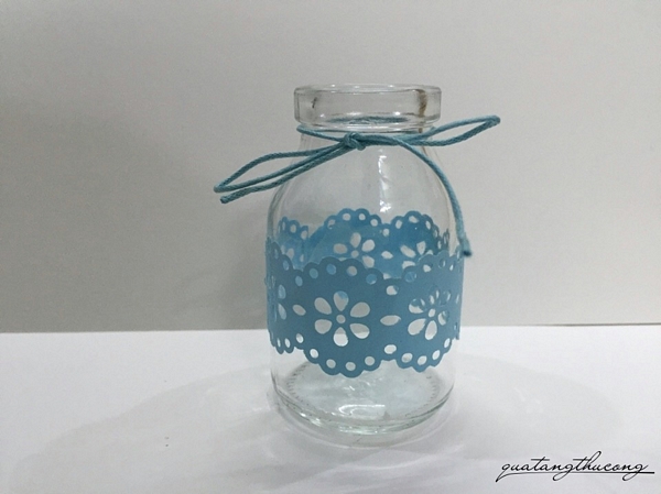 Lọ thủy tinh trang trí ren giấy xanh ngọc