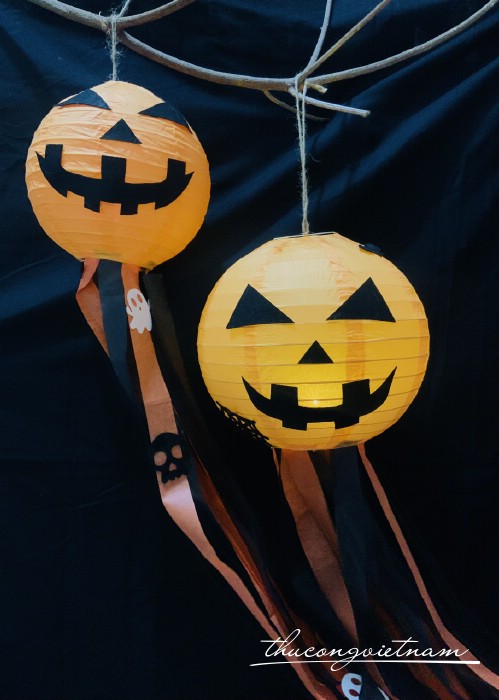 Lồng đèn giấy Halloween kèm đèn có tua rua