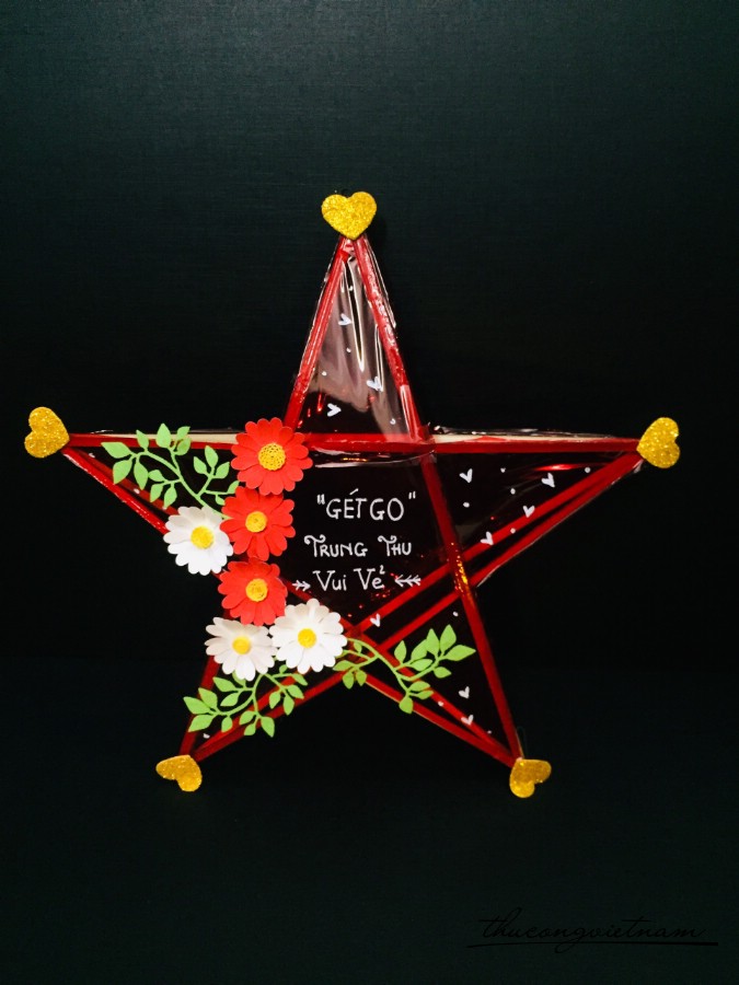 Lồng đèn giấy kiếng ngôi sao "Gét Go Trung Thu Vui Vẻ"-Đỏ