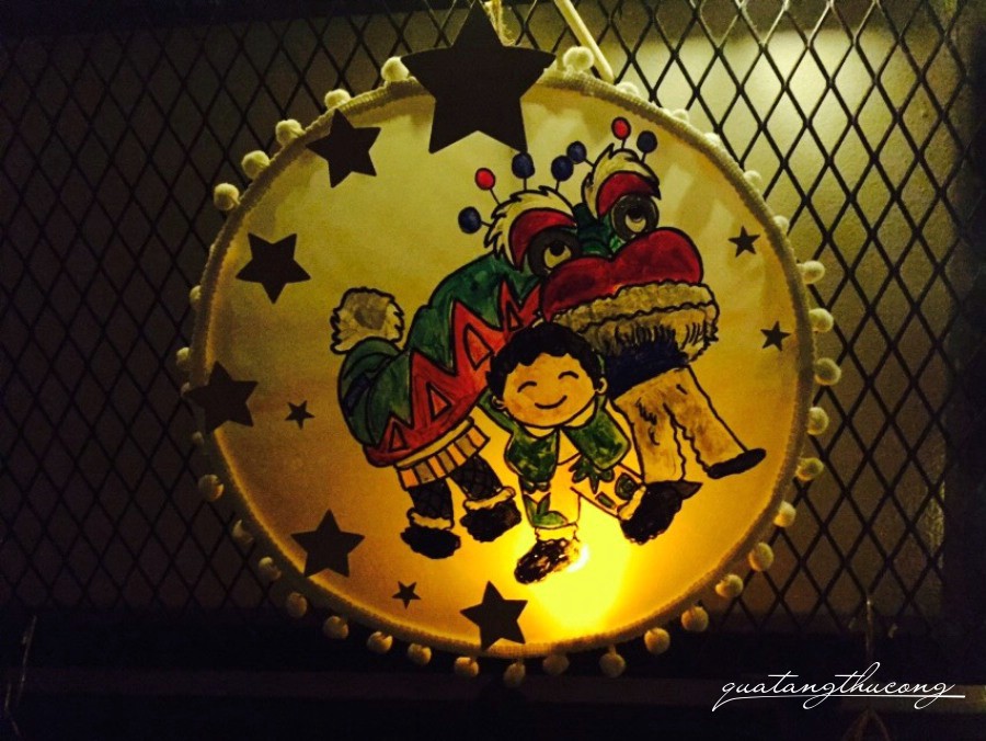 Lồng đèn tre tròn đã trang trí - Ba bạn nhỏ múa lân