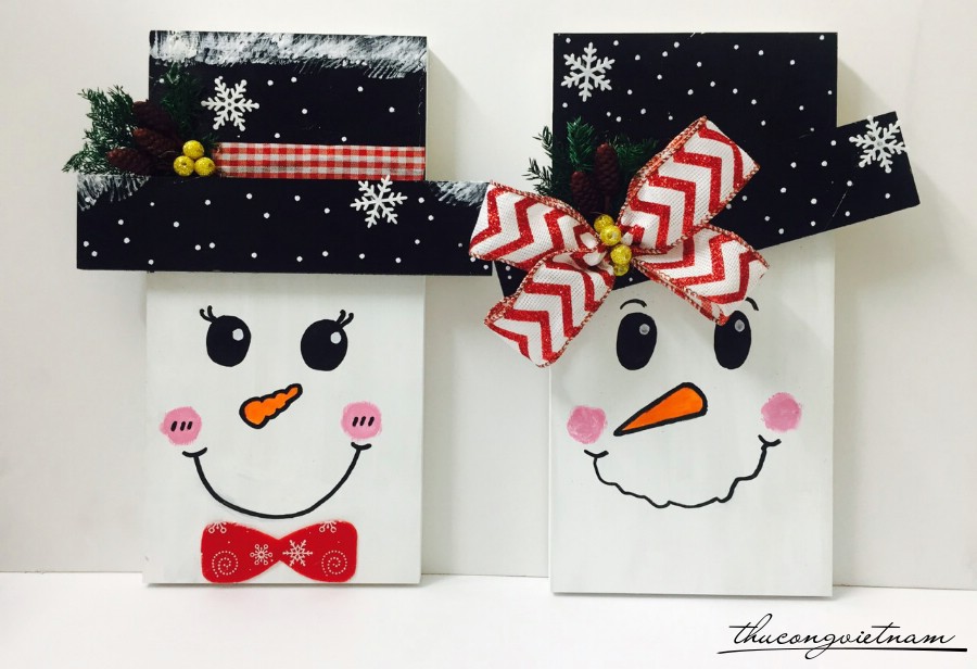 Người tuyết bằng gỗ, vẽ tay hoàn toàn dùng để trang trí trên bàn làm việc, bàn học,...