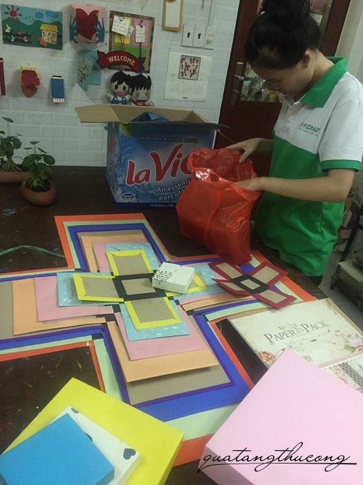 Cùng xem qua hình ảnh làm hộp thiệp 9 lớp của Quà tặng thủ công nhe!