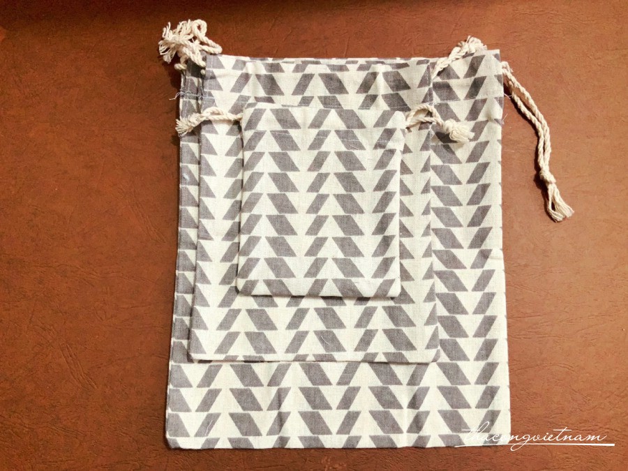 Set 3 túi rút vải bố họa tiết với 3 size khác nhau: S, M, L