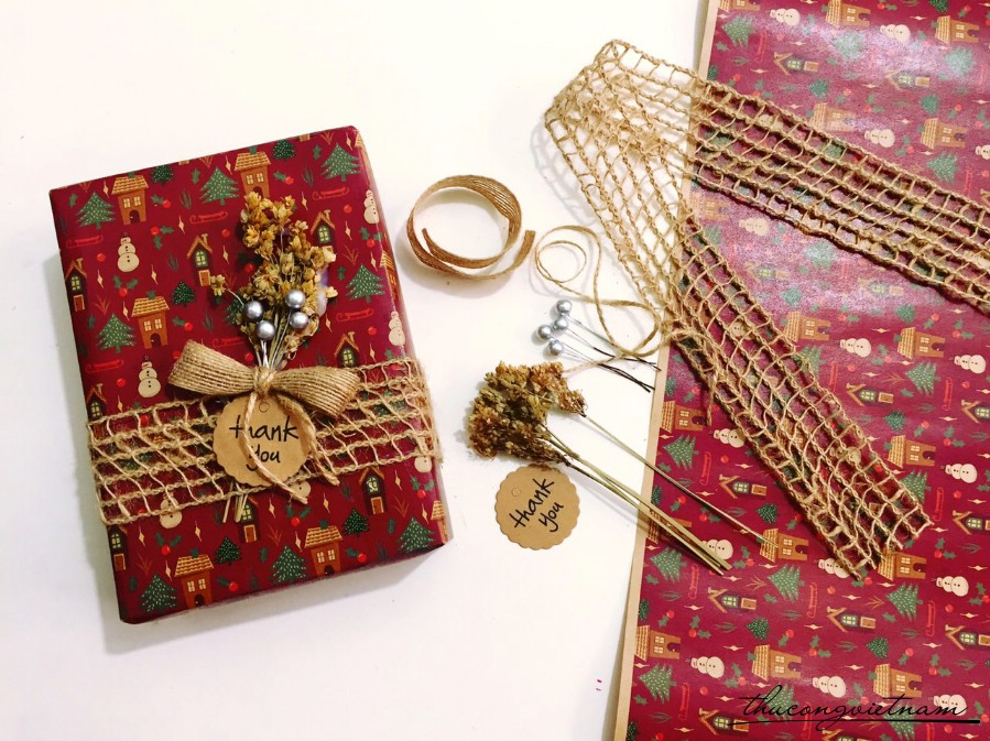 Set gói quà giáng sinh, bạn có thể gói được một hộp quà như hình mẫu nha!