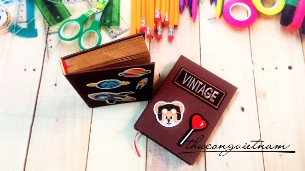 Sổ bọc vải với nhiều màu sắc khác nhau, sau đó được patch ủi thêm nhiều họa tiết xinh xắn.