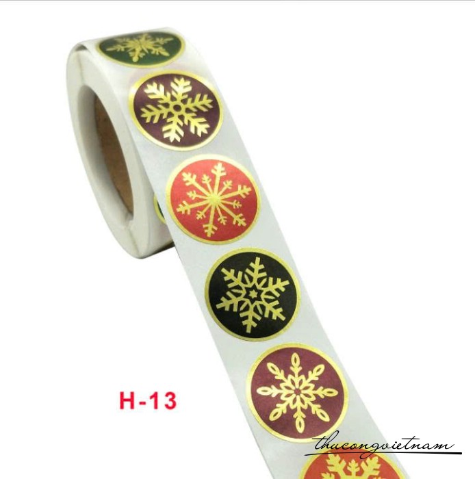 Sticker tròn Giáng Sinh nhũ ánh kim (500 tem)- Bông tuyết mix màu