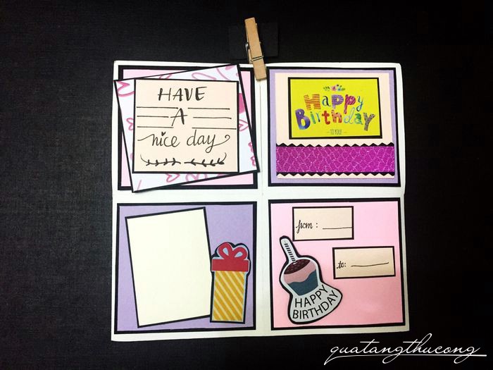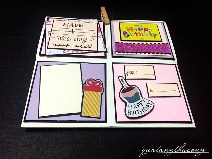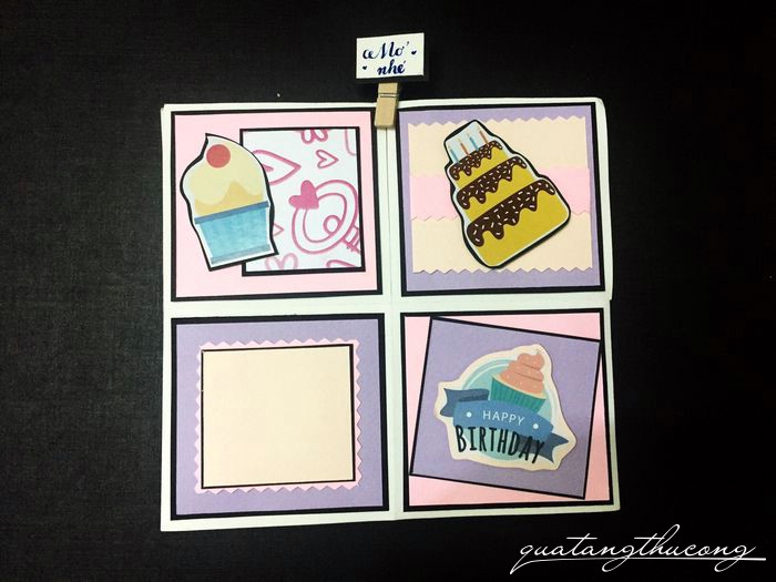 Từ bên ngoài thiệp đã được trang trí đẹp mắt, dễ thương.