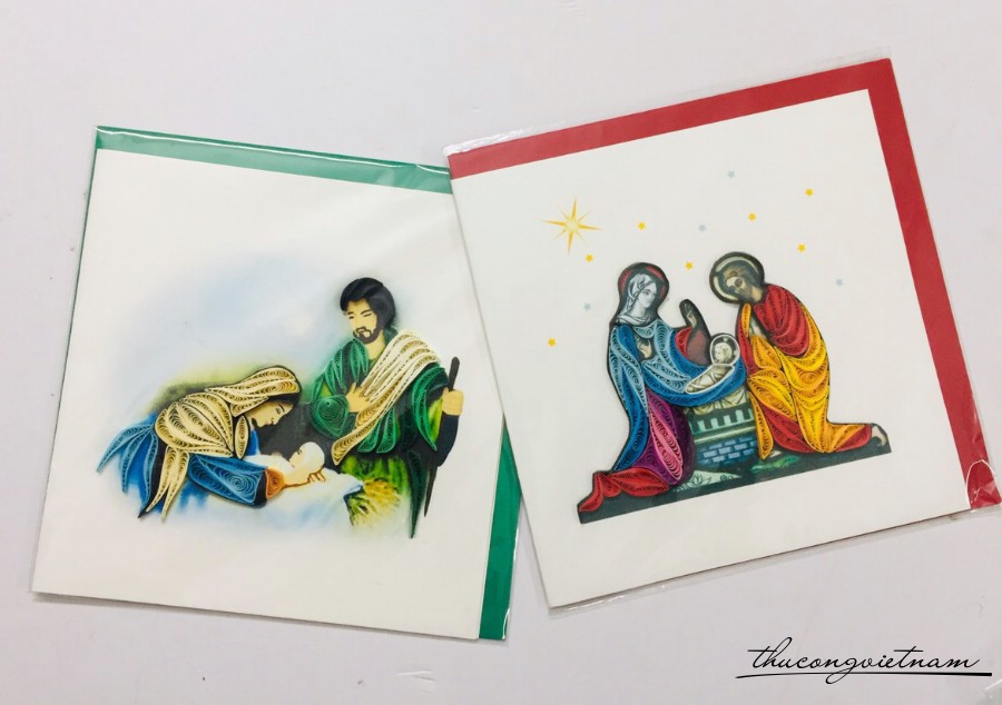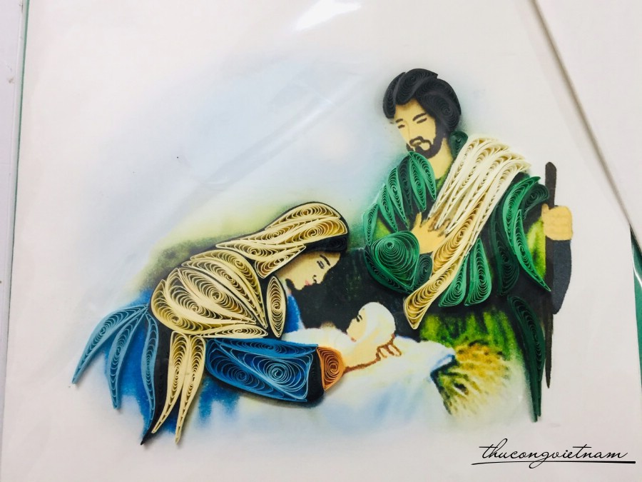 Quilling được quấn tỉ mỉ thành hình Thiên Chúa, Đức Mẹ, Thánh Giuse,...