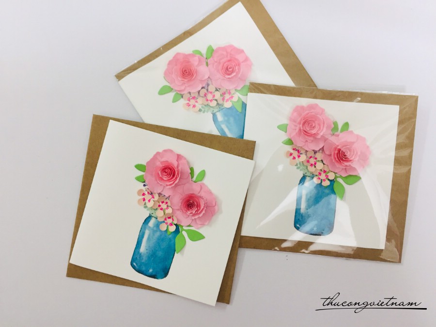 Thiệp Quilling 10*10cm- Lọ hoa hồng