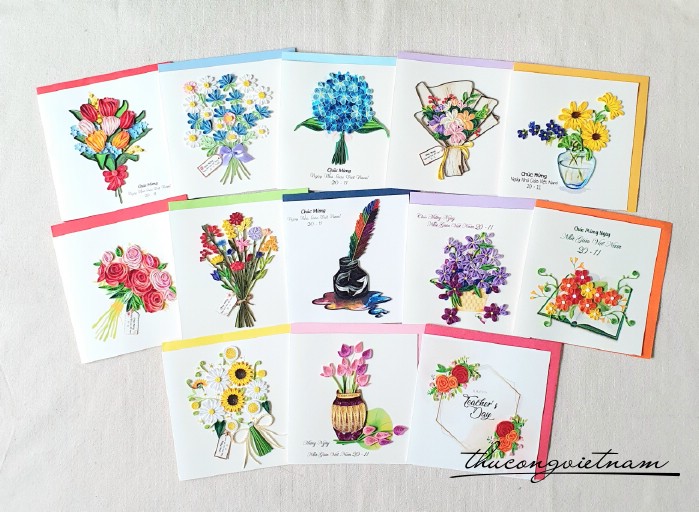 Quilling được quấn tỉ mỉ thành hình những bông hoa để tri ân thầy cô, người đã có nhiều công sức trong quãng đời học sinh của mình.