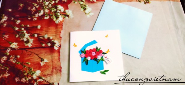 Thiệp được trang trí làm nổi bật họa tiết với cách quấn giấy quilling.