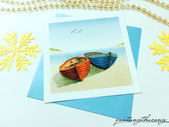 Tấm thiệp thật tinh tế, với họa tiết chiếc thuyền được quấn giấy quilling một cách tỉ mỉ.