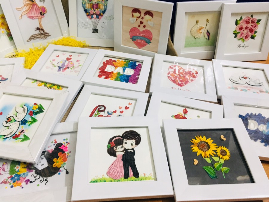 Quilling được chúng tớ quấn tỉ mỉ tạo nên những khung tranh đẹp để các bạn có thể dùng để làm quà tặng nhân những dịp đặc biệt.