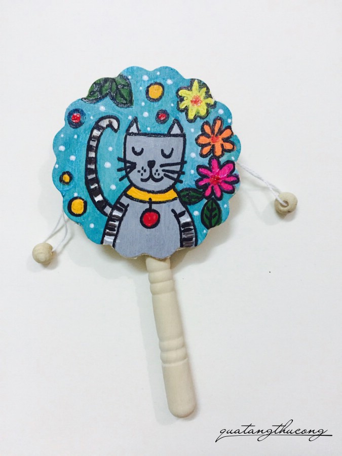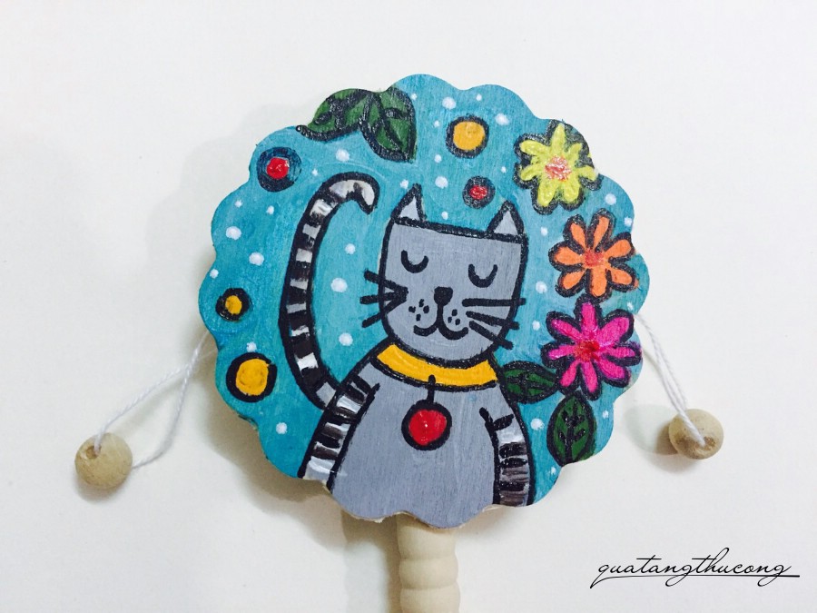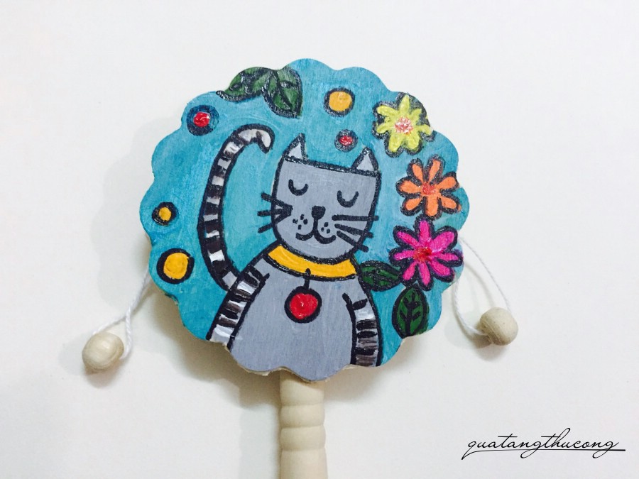 Trống lắc tay bằng gỗ được trang trí tô vẽ hình sống động, dùng để trang trí, làm đồ chơi cho các bé và nhiều công dụng khác,...