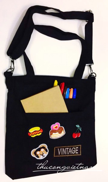 Túi được trang trí hình ngẫu nhiên bằng những miếng patch xinh.