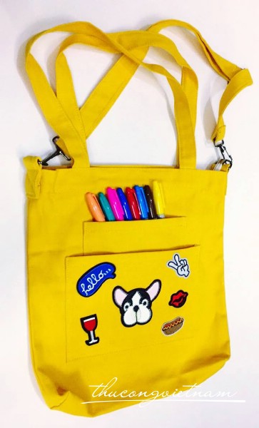 Túi được trang trí hình ngẫu nhiên bằng những miếng patch xinh.