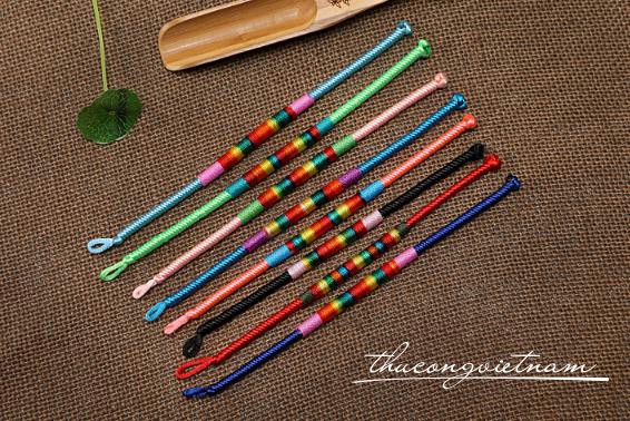 Các bạn biết vòng tay tình bạn chứ? Đây cũng là 1 loại vòng tay tình bạn, nhưng được thắt từ những sợi vải bóng bền bỉ, cách thắt sẽ phức tạp, đan xen những đường dây màu khác nhau ở giữa dây làm điểm nhấn.