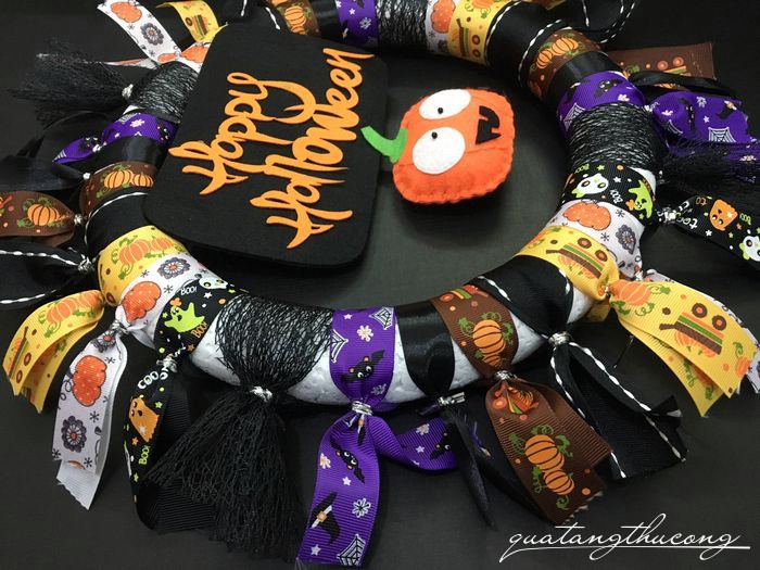 Vòng trang trí Halloween làm từ ruy băng Châu Âu và phụ kiện vải nỉ