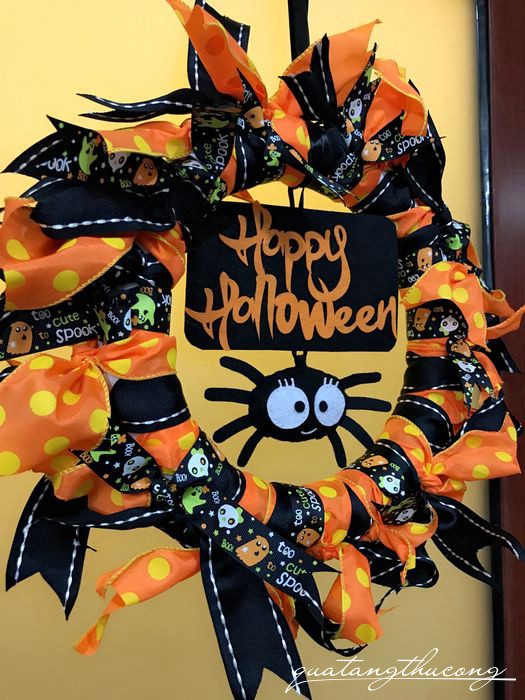 Vòng trang trí Halloween làm từ ruy băng Châu Âu và phụ kiện vải nỉ