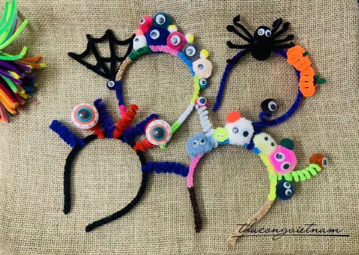 Ngoài mặt nạ giấy, thì VNC còn có nhiều phụ kiện khác nữa cho HLW này nữa đó chẳng hạn như những chiếc kẹp, băng đô nhỏ nhắn xinh xắn này đây. Và đặc biệt hơn đây là những chiếc băng đô được VNC sáng tạo từ những sợ kẽm nhung và bông bi, trông thât độc đáo đúng không nào