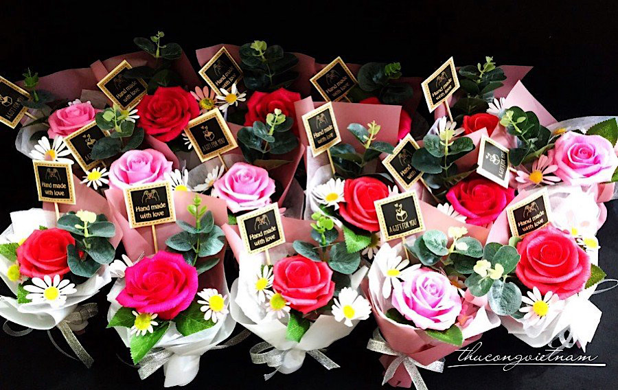 Những bó hoa từ giấy mỹ thuật, từ vải đã quá quen thuộc tại Vinacraft rồi. Tuy nhiên thì không hề nhàm chán vì có rất nhiều loại hoa: hoa hồng, hoa thạch thảo, hoa Tulip, hoa cẩm tú cầu, hoa đồng tiền, hoa cúc... và được làm từ nhiều màu sắc rất sống động.