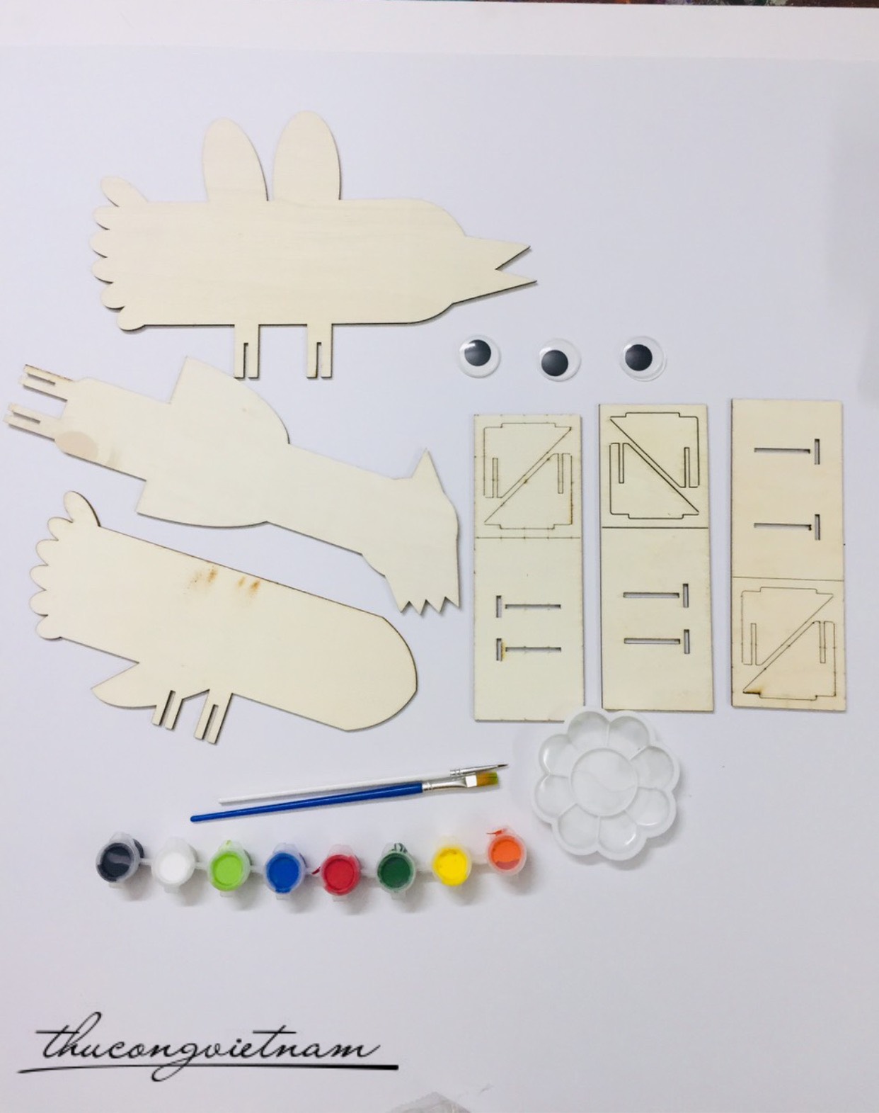 Nếu bạn đã chán tô tượng hay tranh thì hãy thử với chất liệu mới của chúng mình đó là bộ nguyên liệu từ gỗ. Bộ nguyên liệu có đầy đủ các nguyên liệu ngoài ra còn có các mảnh gỗ các bạn có thể tô vẽ sau đó láp ráp lại sẽ được một chú chim gỗ để trang trí hay cho vào bộ sưu tập đồ chơi hay để dạy học đều được cả.