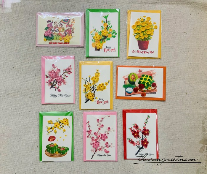 Bộ quilling dụng cụ làm 10 thiệp Tết 6*9cm nhiều mẫu
