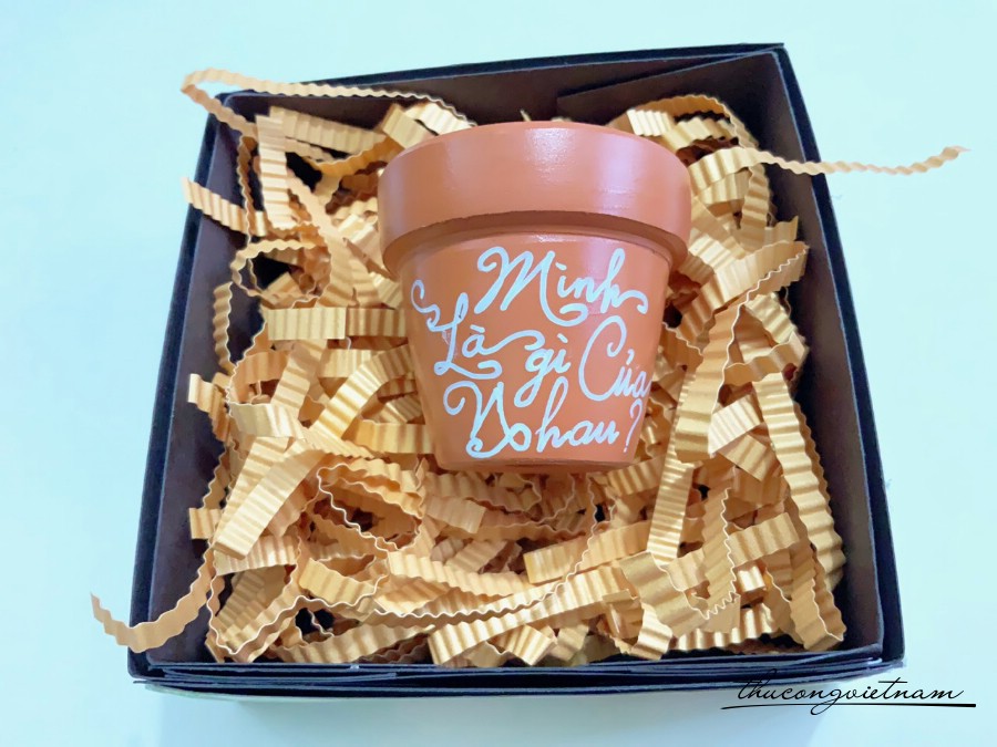 Để phù hợp làm quà tặng thì Vinacraft có làm thêm hộp và rơm đựng như hình, tuy nhiên cả combo chậu đã trang trí, hộp giấy, rơm có giá là 30.000 VND/combo nha các bạn ơi! Các bạn note thêm "đặt combo" vào khi đặt hàng giúp Team Vinacraft, hoặc liên hệ trực tiếp với chúng mình nhé để Team chuẩn bị và giao hàng đúng cho các bạn nè.