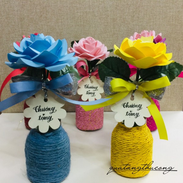 Được trang trí trong lọ thủy tinh quấn dây giấy kim tuyến.