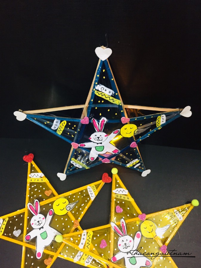 Lồng Đèn Ngôi Sao Giấy Kiếng -Mẫu Thỏ Và Trăng (30cm)