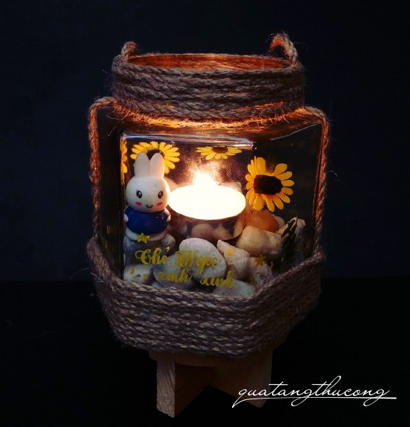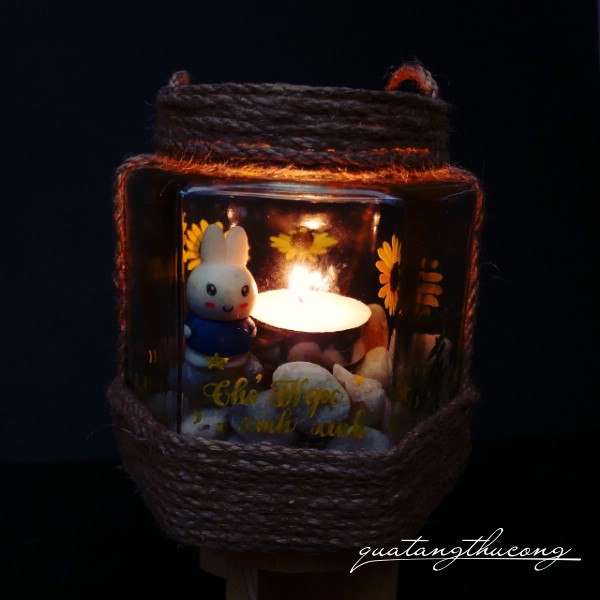 Tại Vinacraft đang có lồng đèn thỏ ngọc làm bằng thuỷ tinh lục giác thể tích 750ml, kích thước11x12cm.