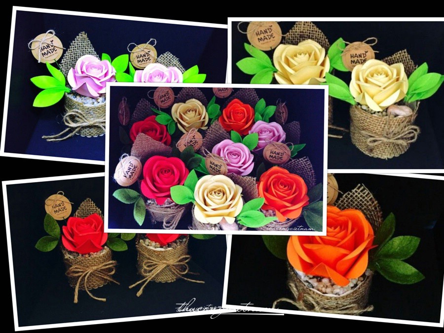 Và cũng không nhất thiết chúng ta phải làm những hoa lớn như hoa thật. Chúng ta có thể làm nhỏ nhỏ, xinh xinh cắm trong lọ mini hay trang trí thiệp.
