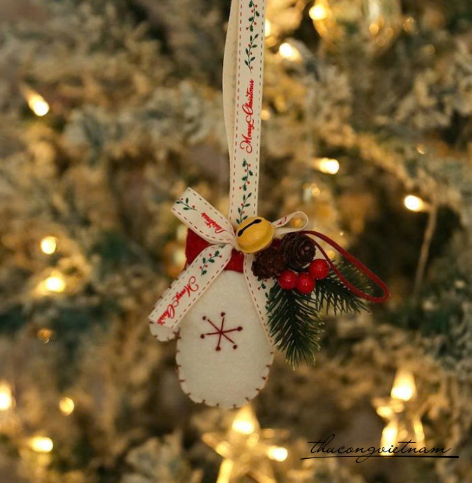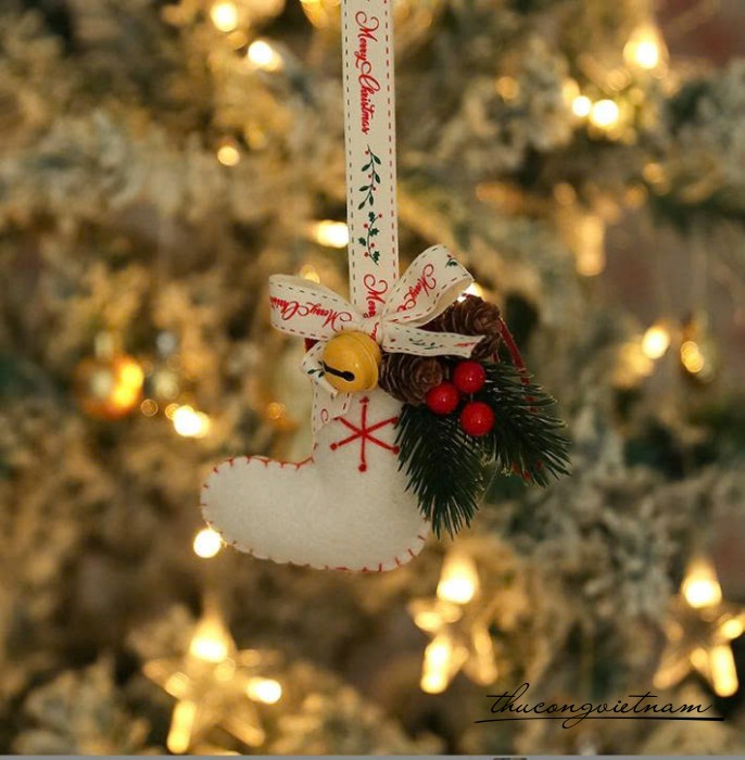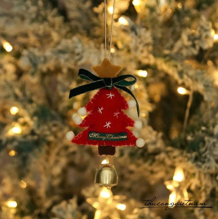 Phụ kiện treo Giáng Sinh kèm chuông với thiết kế cây thông, tất, găng tay mềm mịn, điểm xuyết những hạt trang trí xinh xắn và nơ ruy băng nổi bật. Mỗi chiếc đều đi kèm chuông leng keng vui tai, mang lại không khí lễ hội rộn ràng cho góc trang trí của bạn. Dễ dàng treo lên cây thông, cửa ra vào, rèm cửa hay trong xe hơi. Kích thước nhỏ gọn nhưng đầy sắc màu, là lựa chọn hoàn hảo để làm mới không gian mỗi mùa Giáng Sinh về.